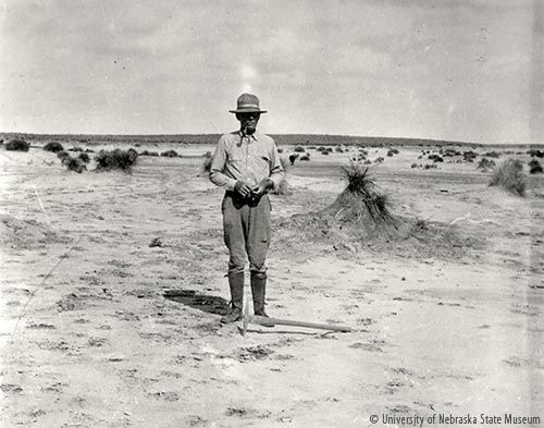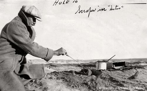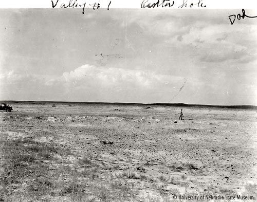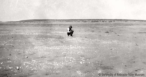 Perry Andersen collecting artifacts in Valley #4, Yuma County, Colorado 1929.
