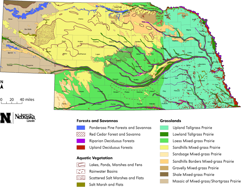 Modified from the original 1: 1,000,000 version prepared by Robert Kaul and Steven Rolfsmeier in 1993. Published by UNL Conservation & Survey Division. Available in 24” x 36” format from UNL's Nebraska Maps & More store.